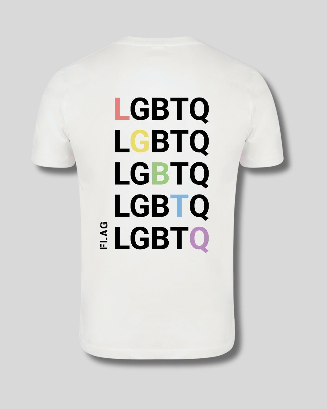 Dieses Shirt ist nicht einfach nur ein Kleidungsstück – es ist ein Teil unserer Community. Mit dem starken "LGBTQ, LGBTQ, LGBTQ" Rückendruck und der einzelnen Buchstabenfärbung in Regenbogenfarben, trägst du ein Symbol, das für Mut, Vielfalt und Zusammenhalt steht. Auf der Frontseite ist ganz stilvoll unser Your Flag Logo in schwarz aufgedruckt.