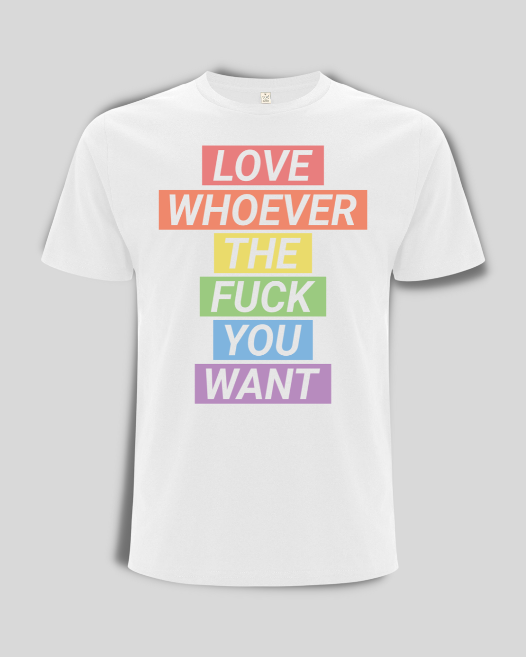 Dieses Shirt ist nicht einfach nur ein Kleidungsstück – es ist ein Teil unserer Community. Mit dem pastellig leuchtenden "Love Whoever the F*** you want" Aufdruck in Regenbogenfarben auf der Brust oder auf dem Rücken, trägst du ein Symbol, das für Mut, Vielfalt und Zusammenhalt steht.